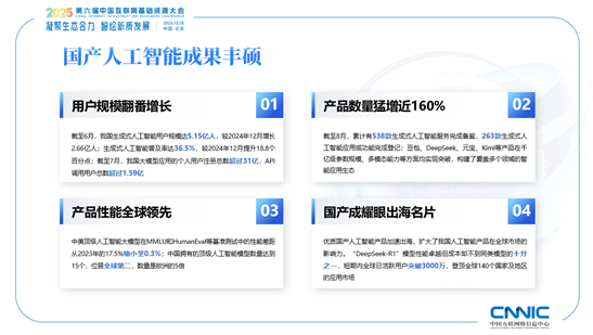 10月18日,中國互聯(lián)網(wǎng)絡信息中心(CNNIC)在2025(第六屆)中國互聯(lián)網(wǎng)基礎資源大會上發(fā)布《生成式人工智能應用發(fā)展報告(2025)》(以下簡稱《報告》)。中國互聯(lián)網(wǎng)絡信息中心副主任張曉對《報告》進行了發(fā)布與解讀。