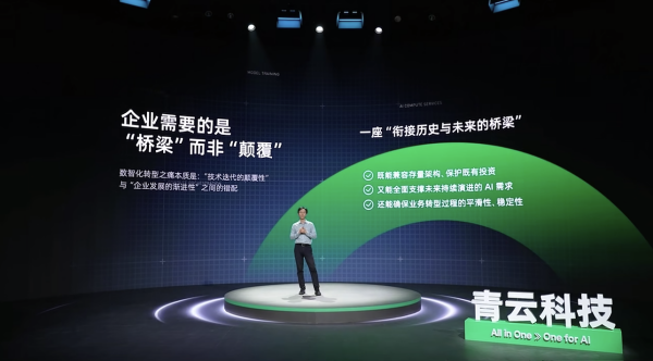 面對(duì)企業(yè)客戶的現(xiàn)實(shí)需求,青云給出的轉(zhuǎn)型答案是架設(shè)一座銜接歷史與未來的橋梁。它能夠兼容存量架構(gòu),保護(hù)既有投資,又能全面支持未來持續(xù)演進(jìn)的AI需求,還能確保業(yè)務(wù)轉(zhuǎn)型中的平滑性和穩(wěn)定性。