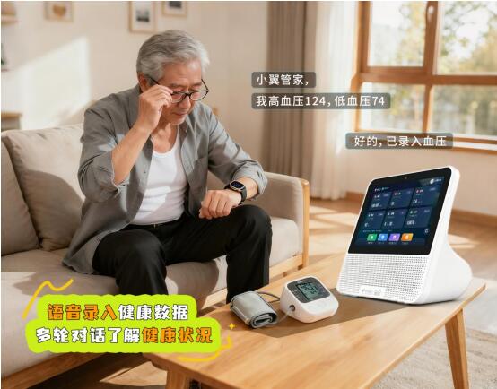老人既可以通過(guò)語(yǔ)音錄入健康數(shù)據(jù),也可將血壓計(jì)、血糖儀等多種智能健康設(shè)備的測(cè)量結(jié)果實(shí)時(shí)同步至智屏端。所有健康數(shù)據(jù)將在云端統(tǒng)一整合,并自動(dòng)生成可視化數(shù)據(jù)圖表,讓健康狀況一目了然。家人可通過(guò)小翼管家、天翼智屏、大屏等多終端查看,全面掌握老人的健康動(dòng)態(tài)。