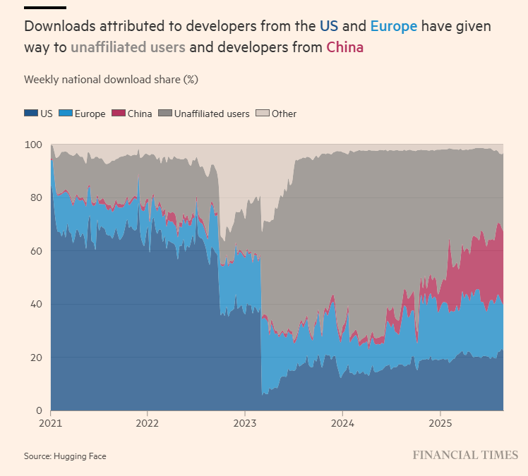 11 月 27 日消息,據(jù)英國《金融時(shí)報(bào)》報(bào)道,在全球開源人工智能也就是 AI 模型市場,中國已經(jīng)超越美國,在這項(xiàng)強(qiáng)大技術(shù)的全球應(yīng)用方面獲得了關(guān)鍵優(yōu)勢(shì)。