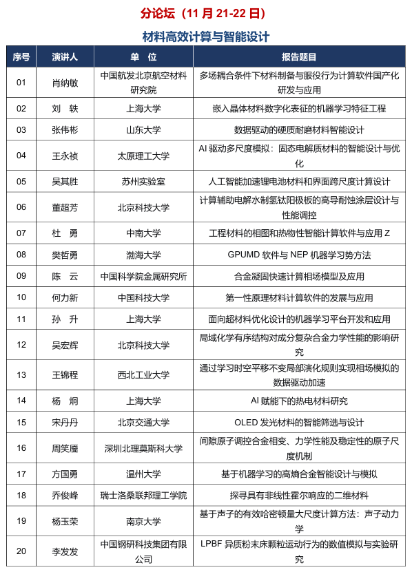 11月20日:開幕式、大會報告,新材料大數據創(chuàng)新聯盟會員大會