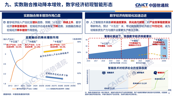 人工智能技術(shù)驅(qū)動數(shù)字經(jīng)濟(jì)向智能化階段演進(jìn)。當(dāng)前,人工智能技術(shù)已呈現(xiàn)出明顯的通用目的技術(shù)特征,具備研發(fā)速度更快、優(yōu)化迭代頻繁、對產(chǎn)業(yè)變革程度更深等新特點(diǎn),正在重構(gòu)生產(chǎn)方式、要素組織與創(chuàng)新體系。預(yù)計(jì)到“十五五”末,我國新一代智能終端、智能體等應(yīng)用普及率將超過90%,由此帶動我國數(shù)字經(jīng)濟(jì)規(guī)模將超過70萬億元,平均增速將超5%,成為未來提升全要素生產(chǎn)率與培育新質(zhì)生產(chǎn)力的主引擎。