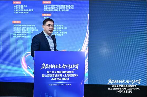2025年12月26日,在智云量子教育城域網(wǎng)發(fā)布暨上海教育城域網(wǎng)三十周年發(fā)展論壇上,上海市數(shù)據(jù)局副局長翁軼叢、中國電信上海公司副總經(jīng)理龔豪、上海市教育委員會(huì)信息化工作處處長韓崇虎、上海市大數(shù)據(jù)中心副主任王明政、上海市經(jīng)濟(jì)和信息化委員會(huì)人工智能發(fā)展處副處長陳釗共同啟動(dòng)“智云量子教育城域網(wǎng)”。