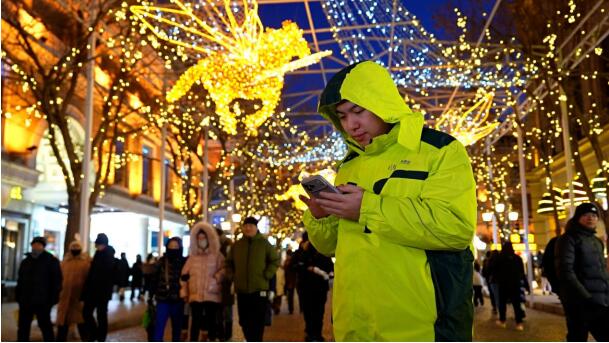 來自南方的劉女士剛離開冰雪大世界,乘坐地鐵來中央大街。在中央大街上,劉女士與朋友一邊翻看剛剛在冰雪大世界拍攝的照片,一邊商量將哪些照片發(fā)布于社交平臺(tái)!奥犝f晚上的中央大街和索菲亞大教堂非常美,拍照很出片!眲⑴空f。移動(dòng)網(wǎng)絡(luò)的順暢,讓像劉女士這樣的移動(dòng)客戶,隨時(shí)隨地都能發(fā)朋友圈、做直播,暢享冰雪旅游帶來的快樂。