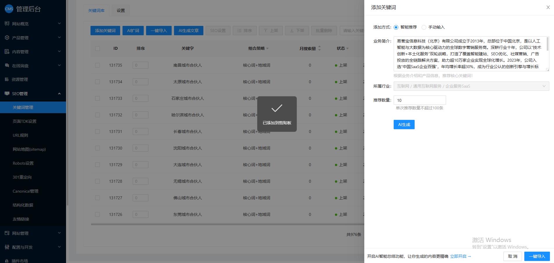 本次易營(yíng)寶AI+SEO系統(tǒng)的重磅升級(jí),主要圍繞以下三大智能化核心功能展開: