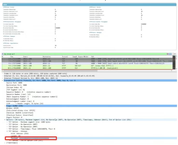 • 儀表統(tǒng)計顯示所有業(yè)務會話均建立成功,抓包顯示tcp報文攜帶正確的設備ID