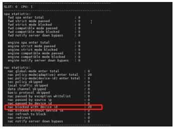 • 啟動測試例之后,在DUT上查看網(wǎng)絡準入情況:網(wǎng)絡準入驗證失敗