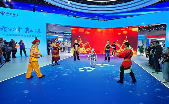 中國電信展臺(tái),一臺(tái)具身智能機(jī)器人與人類舞者共同演繹了充滿嶺南特色的英歌舞。機(jī)器人動(dòng)作精準(zhǔn),與人類配合默契。這背后是中國電信5G-A超低時(shí)延網(wǎng)絡(luò)、云計(jì)算與邊緣計(jì)算能力,保障了海量感知數(shù)據(jù)的傳輸與AI的實(shí)時(shí)決策控制。