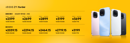 此次 iQOO Z11 Turbo 提供五款存儲(chǔ)版本,首銷(xiāo)優(yōu)惠價(jià)2399元起,疊加國(guó)補(bǔ)后低至2039.15元。這款集強(qiáng)性能、好影像、高質(zhì)感于一體的中端機(jī),將成為跨次元玩家的全能伙伴。