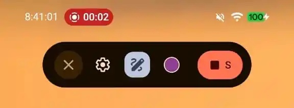 錄制開始后,膠囊控件會(huì)自動(dòng)隱藏至狀態(tài)欄,點(diǎn)擊即可喚出;在錄制過程中,用戶可訪問相關(guān)設(shè)置,也可以使用多種顏色的畫筆進(jìn)行涂鴉;錄制結(jié)束后,系統(tǒng)還會(huì)提供預(yù)覽界面以便用戶快速分享或編輯視頻。