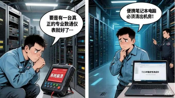 穩(wěn)定性焦慮:非專業(yè)數(shù)通儀表產品面臨產品不穩(wěn)定因素,專業(yè)數(shù)通儀表配合消費級筆記本7×24小時滿負載運行,過熱、藍屏、死機隨時可能導致測試歸零。