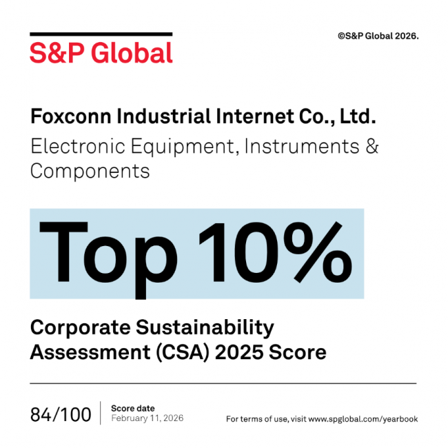 近日,國(guó)際權(quán)威機(jī)構(gòu)標(biāo)普全球(S&P Global)正式發(fā)布2026年度《可持續(xù)發(fā)展年鑒》。憑借在環(huán)境、社會(huì)及公司治理(ESG)方面的卓越表現(xiàn),工業(yè)富聯(lián)連續(xù)第二年入選年鑒,并首次獲得全球電子設(shè)備、儀器和元器件行業(yè)“TOP 10%”表彰。