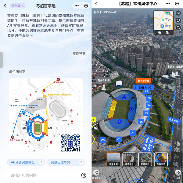 比賽開始前,不少外地球迷照著手機(jī)小程序里的座位引導(dǎo),很快就找到了自己的座位。“我第一次來常州奧體,本來以為座位不好找,沒想到一個小程序就能搞定,還給我推薦了常州的蘿卜干、銀絲面館,太貼心了。”一位來自蘇州的球迷一邊展示著手機(jī)上的“靈犀·曉伴”蘇超百事通,一邊滿意地點(diǎn)頭說道,“這下看球、逛吃兩不誤了!