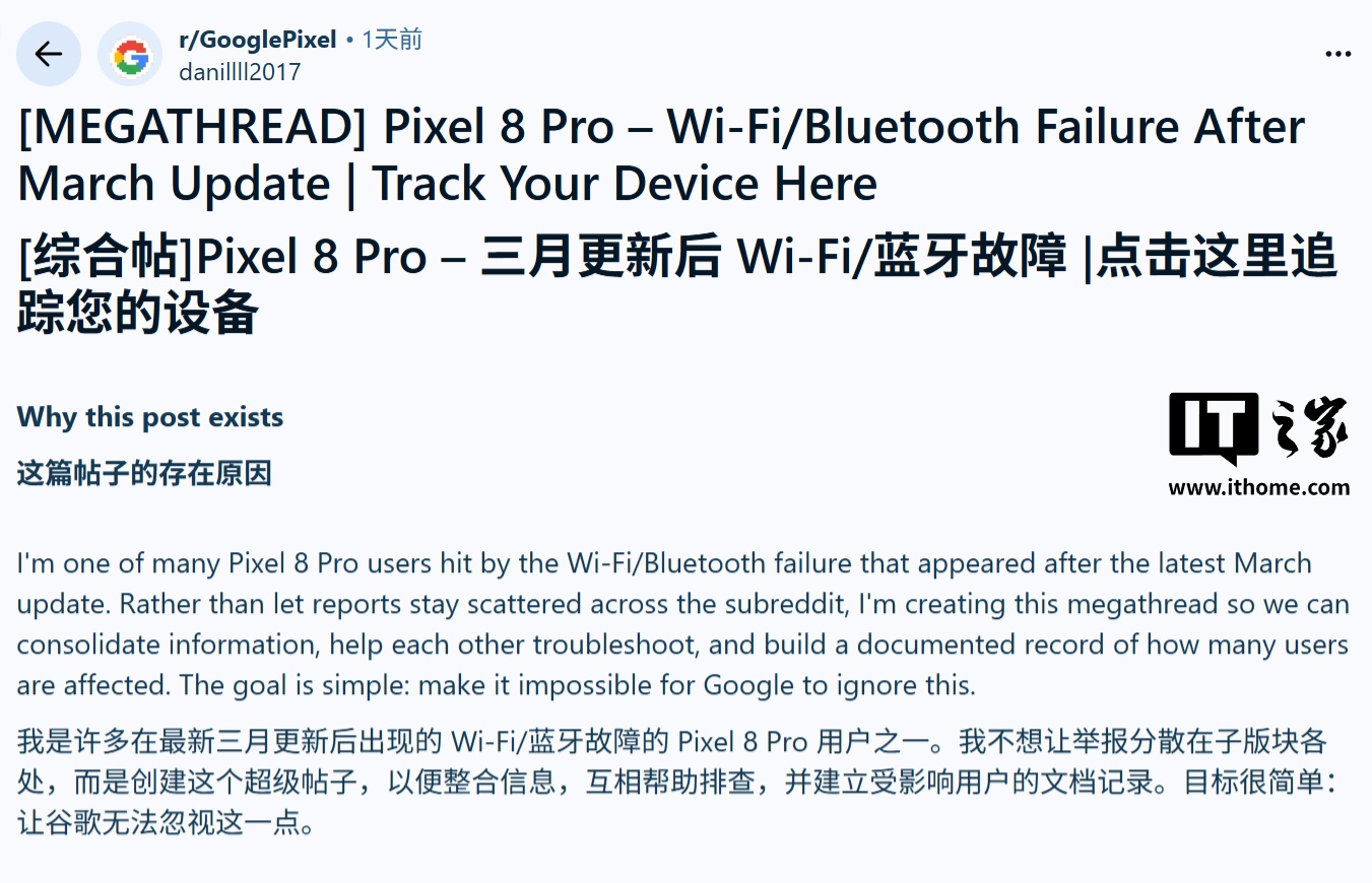 多位用戶反饋在安裝 2026 年 3 月安全更新后,Pixel 8 Pro 和 Pixel 10 Pro 等機型出現(xiàn)了藍牙無法開啟、Wi-Fi 搜不到信號或頻繁斷連的情況。