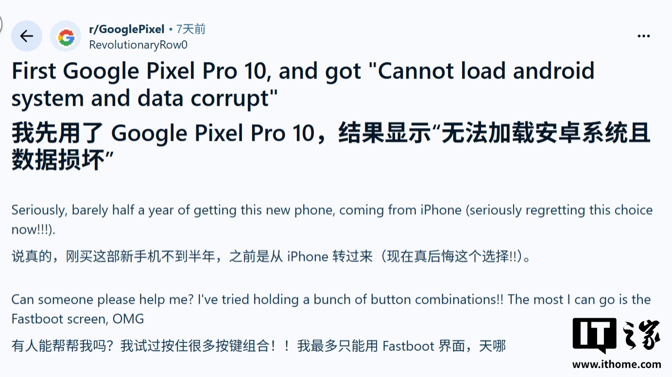 故障原因目前尚不明確。雖然 Google 已在官方問題追蹤平臺上確認收到反饋,并將問題移交工程團隊,但未公布具體成因或修復時間表。部分用戶嘗試通過側(cè)載固件修復,但未能解決問題。有用戶反饋,即便手機能正常啟動,更新后也出現(xiàn)了隨機崩潰現(xiàn)象。