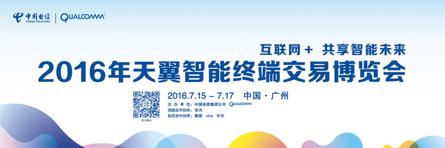 2016年7月15-17日,中國電信攜手美國高通公司將在廣東省廣州市廣交會展館舉辦"2016年天翼智能終端交易博覽會"。本屆博覽會將以"互聯(lián)網(wǎng)+,共享智能未來"為主題,打造最具前瞻性、科技性、時尚性的行業(yè)高品質(zhì)展會。博覽會設立了互聯(lián)網(wǎng)+終端、互聯(lián)網(wǎng)+行業(yè)、互聯(lián)網(wǎng)+智慧家庭、互聯(lián)網(wǎng)+創(chuàng)新創(chuàng)業(yè)、互聯(lián)網(wǎng)+互動樂園五大主題展區(qū)。