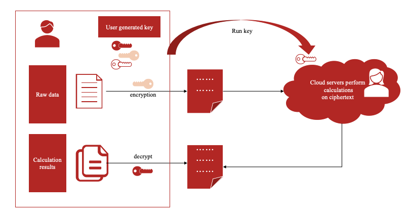 在計算過程中,全同態(tài)加密特性發(fā)揮關(guān)鍵作用,使得各類復(fù)雜運(yùn)算可直接在密文上進(jìn)行,無需解密。這一過程如同在黑盒中操作,運(yùn)算結(jié)果始終保持加密狀態(tài)。