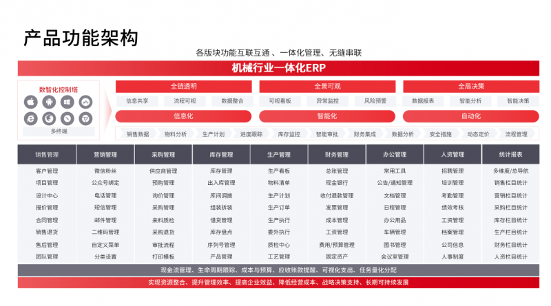 面對這些根深蒂固的行業(yè)痛點(diǎn),傳統(tǒng)管理工具已難以滿足企業(yè)轉(zhuǎn)型需求。智邦一體化ERP憑借對機(jī)械設(shè)備行業(yè)生產(chǎn)特性的深刻洞察,構(gòu)建起針對性的解決方案,成為打破“黑箱”困局的關(guān)鍵力量。