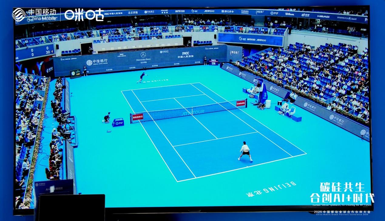 一場由技術(shù)驅(qū)動的觀賽革命正在上演!癆I+3D全真視頻”將“自由視角”觀賽從概念變?yōu)楝F(xiàn)實。通過環(huán)繞賽場部署多臺高精度攝像機(jī),實現(xiàn)360°全景覆蓋拍攝,實時生成動態(tài)三維場景。本次中國網(wǎng)球公開賽直播中,觀眾已可通過咪咕視頻旋轉(zhuǎn)畫面,切換任意角度欣賞球員的強(qiáng)力扣殺、發(fā)球細(xì)節(jié),真正實現(xiàn)了“我的視角我做主”的沉浸式觀賽體驗。