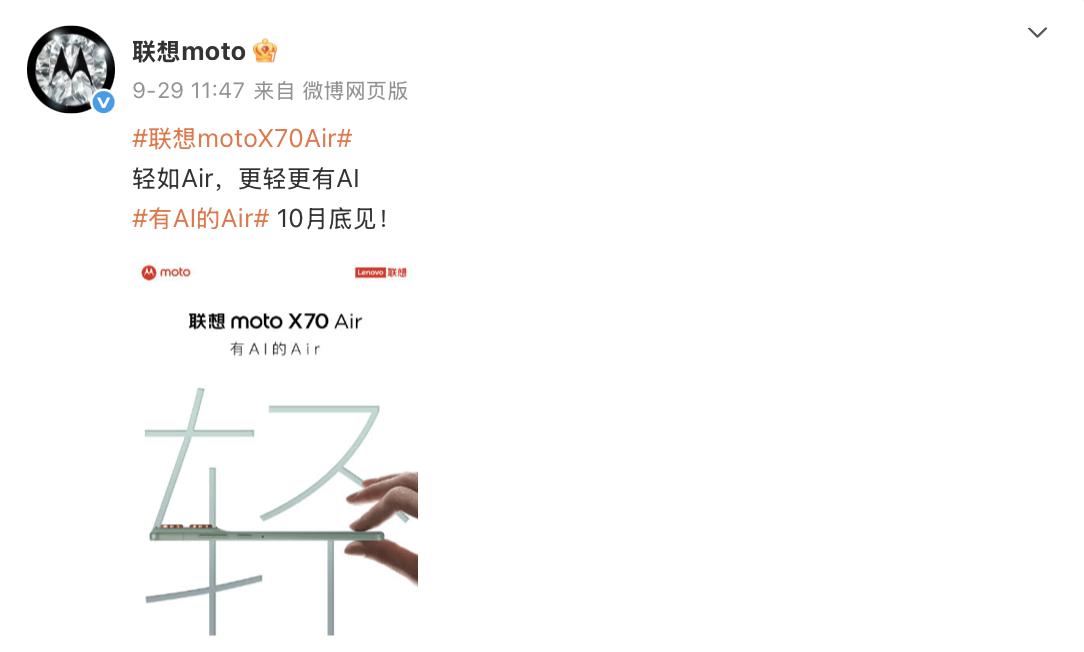 據(jù)此前聯(lián)想官方發(fā)布的信息,10月底,聯(lián)想moto X70 Air等AI產(chǎn)品將與大家見(jiàn)面,相信很快會(huì)有更多信息宣布,此番有了代言人的加持,更加值得期待。