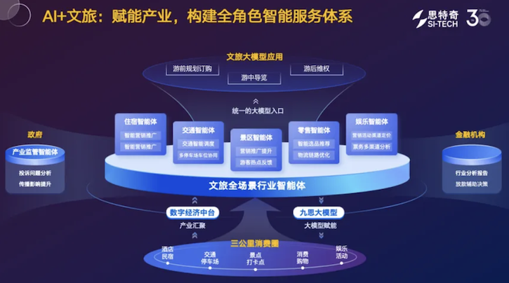 在文旅領(lǐng)域,思特奇以自研文旅大模型為核心,整合餐飲民宿、交通停車、景點打卡等"三公里消費圈"資源,構(gòu)建覆蓋游客、企業(yè)、政府的全角色智能生態(tài)。通過住宿、交通、景區(qū)、零售、娛樂五大智能體協(xié)同,實現(xiàn)游前規(guī)劃、游中導(dǎo)覽、游后維權(quán)全流程服務(wù);政府借助產(chǎn)業(yè)監(jiān)管智能體實現(xiàn)投訴分析與傳播預(yù)測,全方位激活文旅產(chǎn)業(yè)活力。
