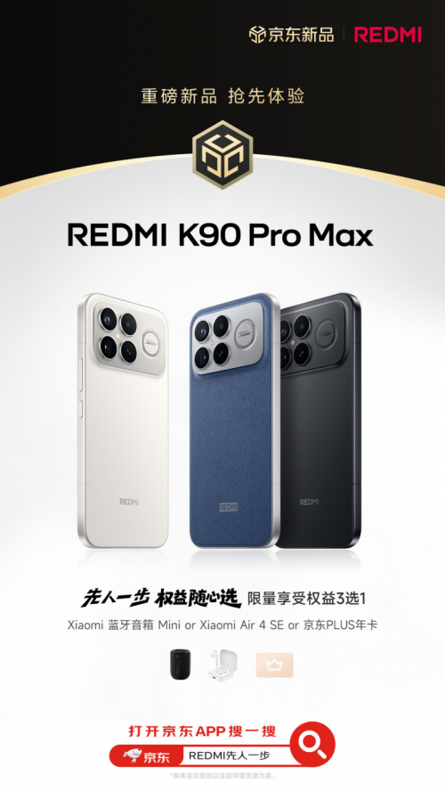 REDMI K90系列將于10月23日發(fā)布,引發(fā)眾多消費(fèi)者關(guān)注。為帶給消費(fèi)者更多權(quán)益,京東攜手小米打造先人一步加速換新計(jì)劃,先人一步下單REDMI K90 Pro Max 16GB+512GB可享限量權(quán)益隨心選,包括Xiaomi藍(lán)牙音箱mini、Xiaomi Air 4 SE、京東PLUS年卡,三項(xiàng)權(quán)益可任選其一。京東11.11火熱進(jìn)行中,即日起消費(fèi)者可到京東APP搜索“REDMI先人一步”進(jìn)入活動頁面預(yù)約新機(jī),方便發(fā)布會后第一時(shí)間下單。