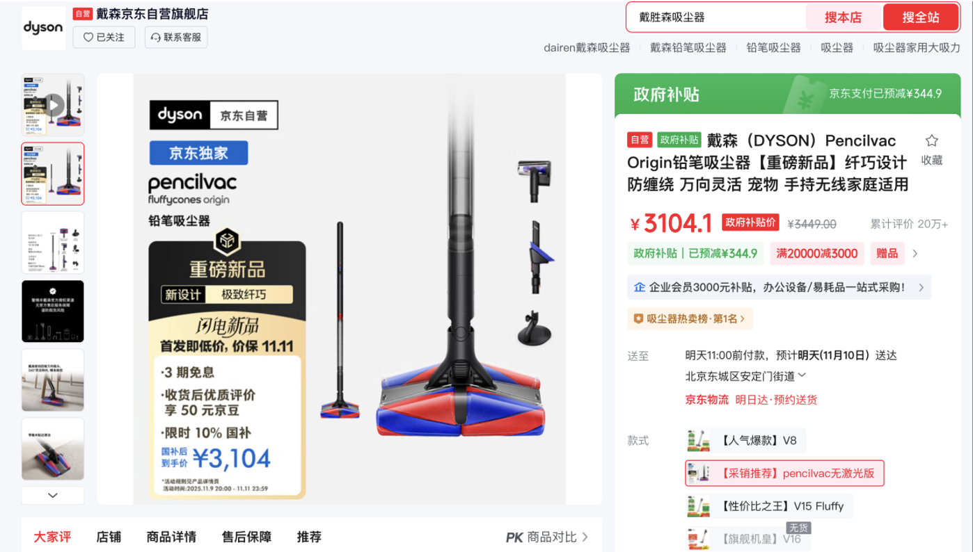 想要及時省心清潔地面,戴森Pencilvac Origin鉛筆吸塵器少不了。機身僅38毫米粗細(xì)、0.92kg重量,靈活易用。馬達(dá)轉(zhuǎn)速高達(dá)14萬轉(zhuǎn)/分鐘,除塵率達(dá)99%,四錐萬向吸頭不易纏繞,搭配免打孔磁吸充電底座,收納充電一步到位。京東11.11下單享限時10%國補,到手價3104.1元。