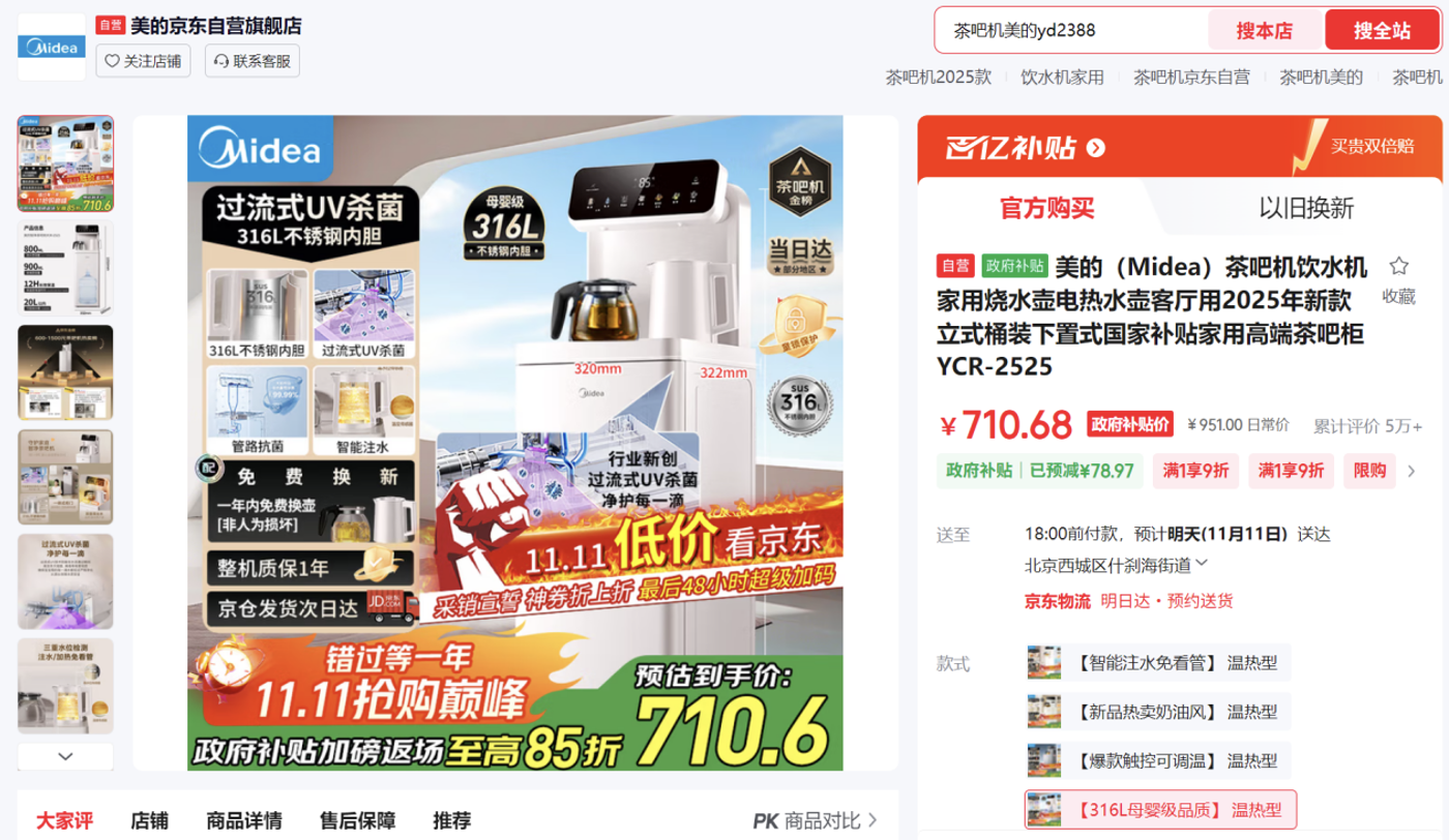寶爸寶媽看過來,擔(dān)心寶寶喝水不衛(wèi)生,水壺材質(zhì)不安全,美的茶吧機統(tǒng)統(tǒng)搞得定;過流式UV殺菌高效滅菌守護每一滴水,316L不銹鋼內(nèi)膽,母嬰級品質(zhì)更安心,12小時長效保溫,觸控彩屏操作簡單,智能防溢防干燒安全守護。京東11.11期間咨詢客服領(lǐng)取專屬20元優(yōu)惠券,疊加補貼到手約690元。
