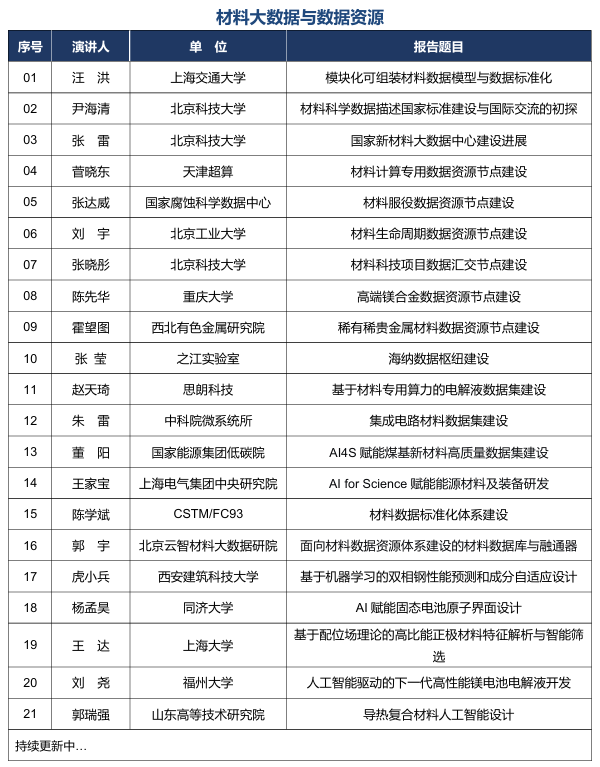 11月20日:開幕式、大會報告,新材料大數據創(chuàng)新聯盟會員大會