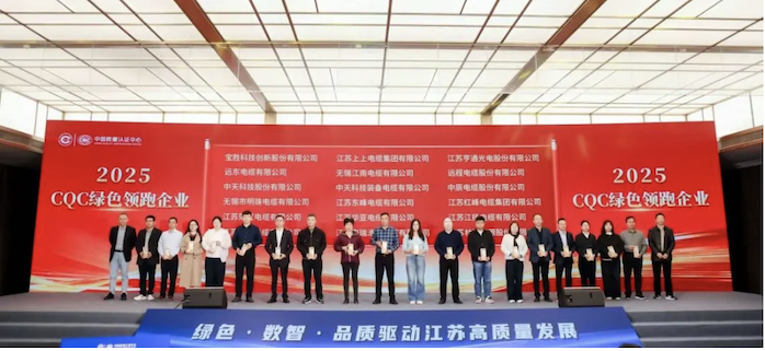 大會期間,亨通光電榮獲中國質(zhì)量認(rèn)證中心頒發(fā)的“CQC 2025綠色領(lǐng)跑企業(yè)”。