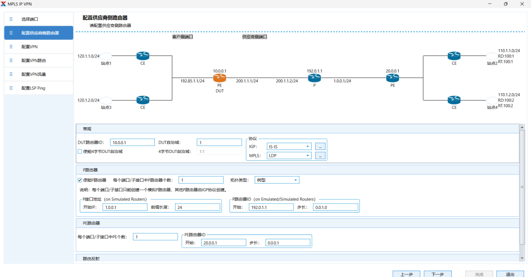 支持大規(guī)模VPN路由仿真能力,支持基于MPLS LDP、SR\SRv6、EVPN、等多種協(xié)議平面的L2\L3VPN仿真。單端口可生成10萬(wàn)+ VPN路由,支持使用智能腳本控制路由振蕩和拓?fù)渥兓,精確測(cè)量路由收斂時(shí)間。