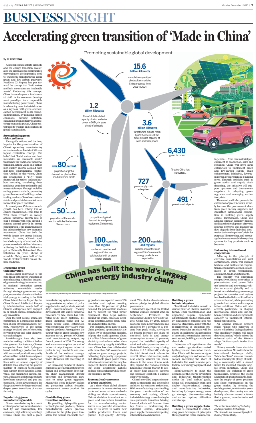 《中國日報》刊發(fā)李樂成英文署名文章:加快中國制造綠色低碳轉(zhuǎn)型 促進(jìn)全球可持續(xù)發(fā)展