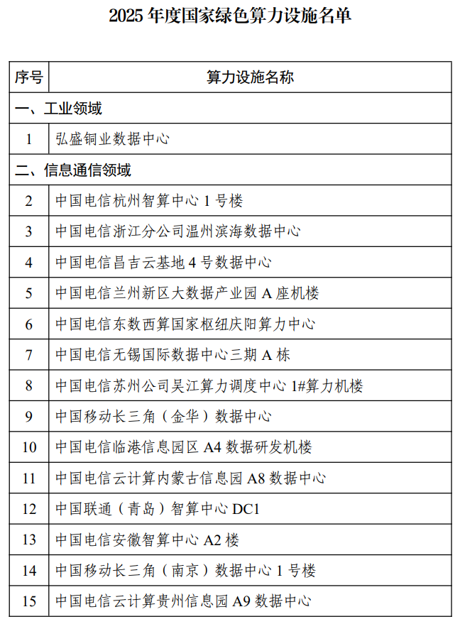 六部門公告《2025年度國家綠色算力設(shè)施名單》