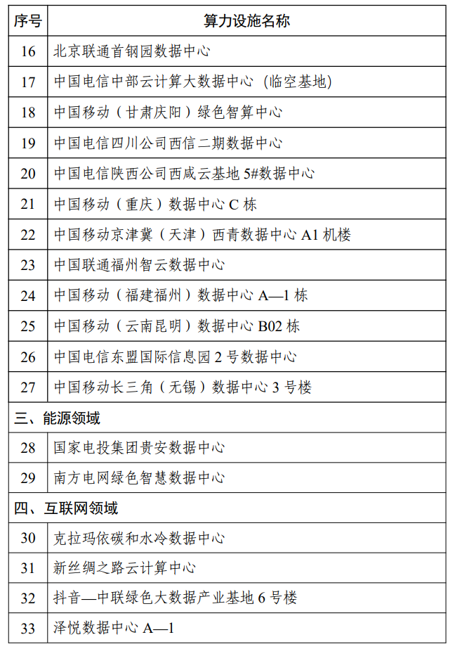 飛象網(wǎng)訊(致新/文)12月31日消息,按照《國務(wù)院關(guān)于印發(fā)〈2024—2025年節(jié)能降碳行動方案〉的通知》(國發(fā)〔2024〕12號)要求,推動算力設(shè)施綠色低碳發(fā)展,工業(yè)和信息化部、國家發(fā)展改革委、商務(wù)部、金融監(jiān)管總局、國管局、國家能源局確定了2025年度國家綠色算力設(shè)施名單,現(xiàn)予以公告。