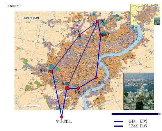 同一年,一張環(huán)繞上海交通大學(xué)、復(fù)旦大學(xué)、同濟(jì)大學(xué)、華東師范大學(xué)、華東理工大學(xué)、上海大學(xué)、‌上海醫(yī)科大學(xué)、上海第二醫(yī)科大學(xué)等八所高校的64K DDN雙環(huán)網(wǎng)悄然建成,這張帶寬尚不及如今一部手機(jī)視頻通話所需的網(wǎng)絡(luò),是上海教育城域網(wǎng)(原上海教育與科研計(jì)算機(jī)網(wǎng),簡稱上海教科網(wǎng))最初的雛形,它將散落于城市各處的高等學(xué)府,首次以數(shù)字方式緊密聯(lián)結(jié),為整座城市的“教育信息化命脈”埋下第一顆種子。