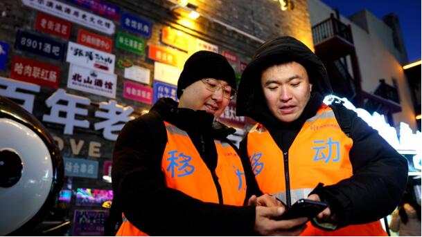 來自南方的劉女士剛離開冰雪大世界,乘坐地鐵來中央大街。在中央大街上,劉女士與朋友一邊翻看剛剛在冰雪大世界拍攝的照片,一邊商量將哪些照片發(fā)布于社交平臺。“聽說晚上的中央大街和索菲亞大教堂非常美,拍照很出片!眲⑴空f。移動網(wǎng)絡(luò)的順暢,讓像劉女士這樣的移動客戶,隨時隨地都能發(fā)朋友圈、做直播,暢享冰雪旅游帶來的快樂。
