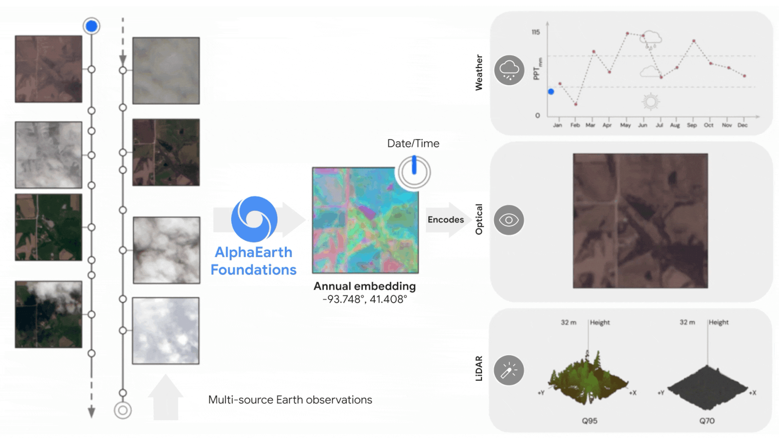 7 月 31 日消息,谷歌今日發(fā)布了一款名為 AlphaEarth Foundations 的全新人工智能模型,該模型被形象地稱為“虛擬衛(wèi)星”,旨在為地球觀測(cè)領(lǐng)域帶來(lái)變革,可以幫助研究人員追蹤地球隨時(shí)間推移發(fā)生的變化。