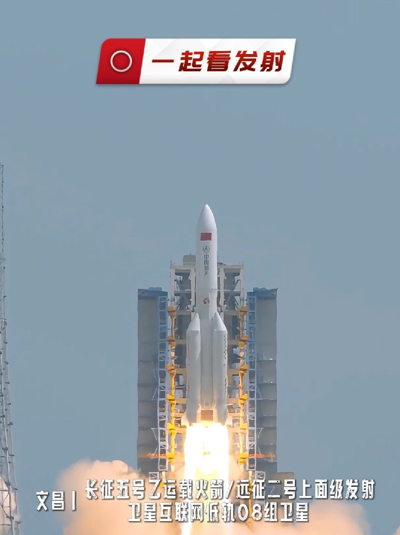 我國現(xiàn)役推力最強:長征五號乙遙八運載火箭成功發(fā)射衛(wèi)星互聯(lián)網(wǎng)低軌 08 組衛(wèi)星