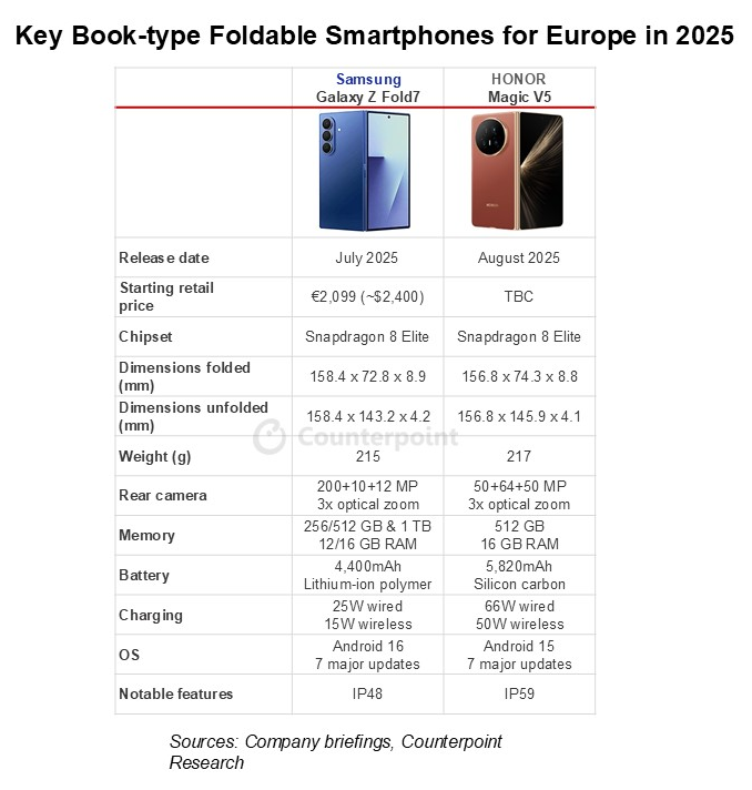 Counterpoint:2024 年折疊手機(jī)戰(zhàn)火燃向歐洲,榮耀銷(xiāo)量同比暴增 377%、三星緊急反攻