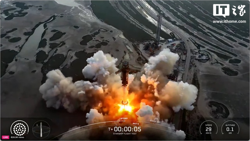 隨著一聲巨響,SpaceX 的星艦超重型助推器準(zhǔn)時(shí)點(diǎn)燃了 33 臺主發(fā)動機(jī),向著太空飛升,開啟 SpaceX 第十次飛行測試的升空之旅。