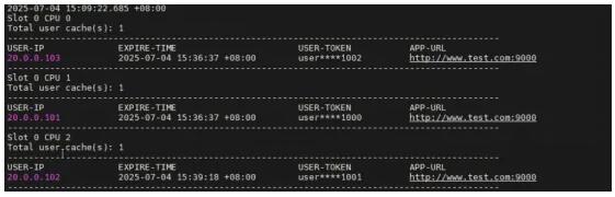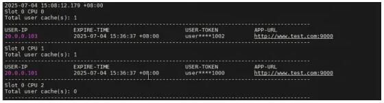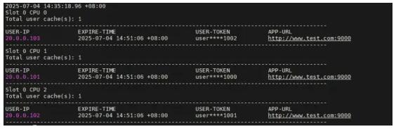 • 啟動測試例之后,DUT上生成對應的緩存表項