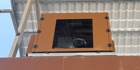 建業(yè)顯示團(tuán)隊(duì)為城墻投影進(jìn)行調(diào)試(左);安裝在防水外殼內(nèi)的科視Christie DWU19-HS激光投影機(jī)(右)