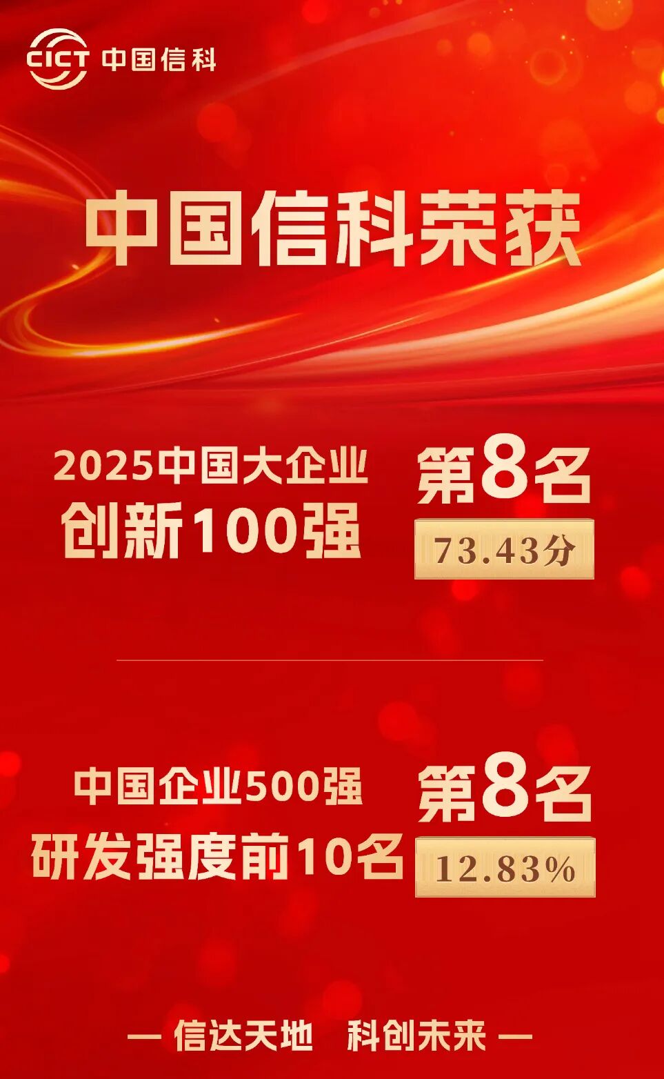 雙榜 | 中國信科入選“中國大企業(yè)創(chuàng)新百強”與“中國企業(yè)500強研發(fā)強度前十”