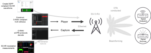 由于涉及大量參數(shù),創(chuàng)建符合5G標(biāo)準(zhǔn)的測試矢量是一項復(fù)雜的任務(wù)。 更為棘手的是,這些測試刺激信號需要以同步方式從DU上的以太網(wǎng)接口、非標(biāo)準(zhǔn)化時域IQ接口或射頻接口發(fā)送,以完成完整的無線測試。