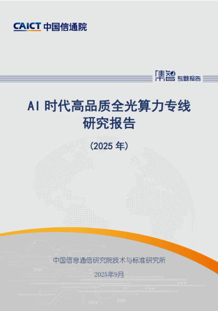 中國(guó)信通院標(biāo)準(zhǔn)所發(fā)布《AI時(shí)代高品質(zhì)全光算力專(zhuān)線研究報(bào)告(2025年)》