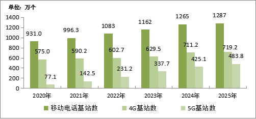 圖4-2  2020—2025年移動(dòng)電話基站發(fā)展情況