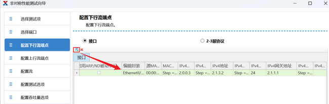 對上行流端點和下行流端點配置接口信息?梢灾С峙渲闷胀╒4/V6接口,模擬主機。