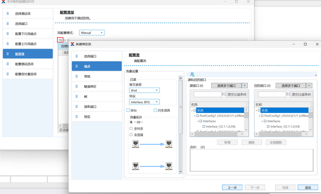 Manual(手動模式):與常規(guī)流量創(chuàng)建流程一致,可自定義源 / 目的接口、報文類型、幀結(jié)構(gòu)、隧道綁定等參數(shù),靈活滿足個性化測試需求。