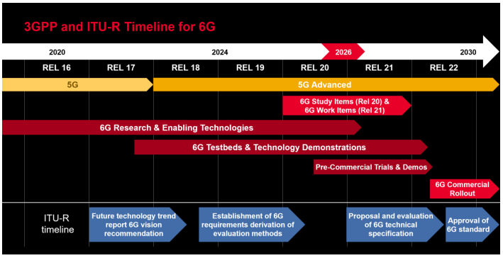 ·Release 20(2025–2026):多軌道架構(gòu)、AI原生空中接口,以及先進(jìn)頻譜共享的研究階段。